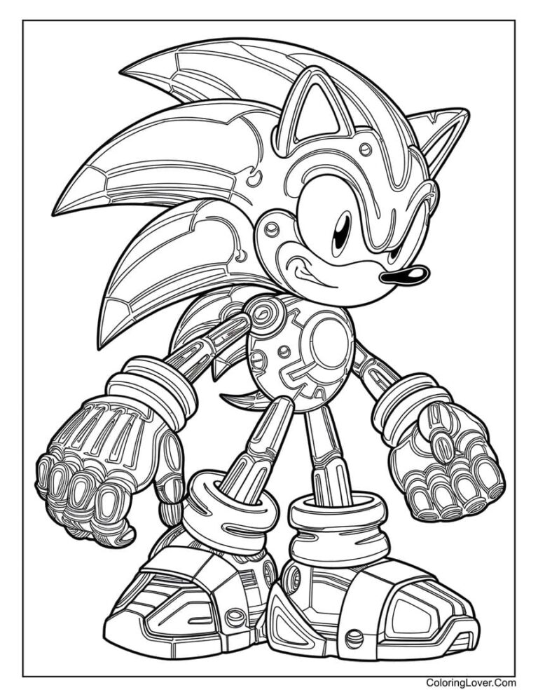 This futuristic Sonic with robotic details was designed to challenge and relax adults who love detailed coloring work.